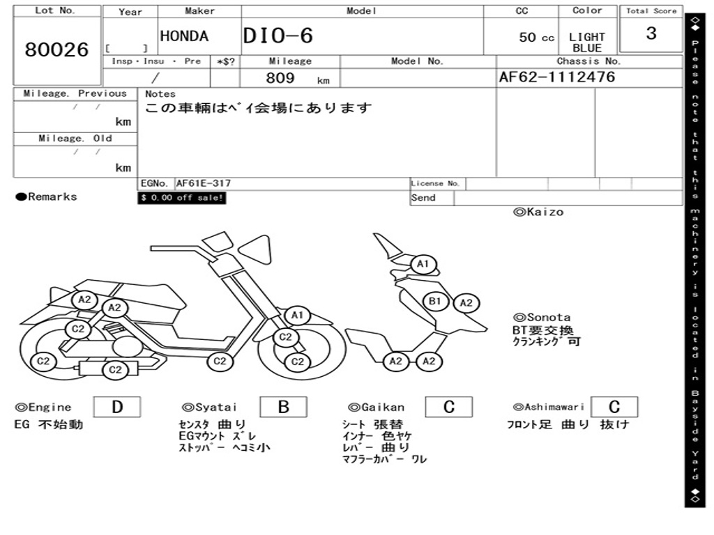 | Аукцион | ARAI BAYSIDE |