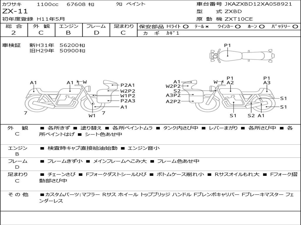 | Номер рамы / VIN | JKAZXBD12XA058921 |