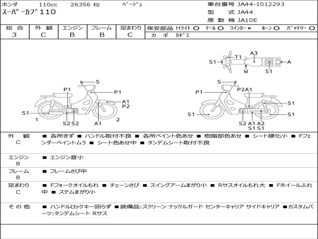 | Номер рамы / VIN | JA44-1012293 |