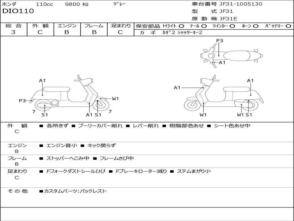 | Номер рамы / VIN | JF31-1005130 |