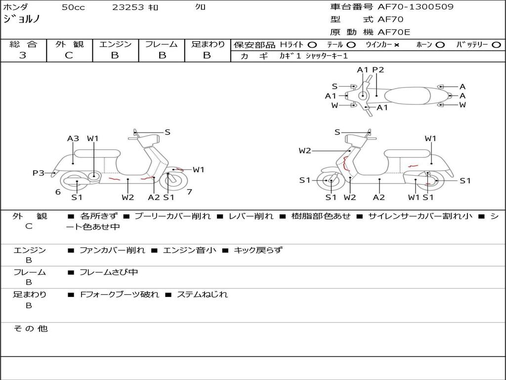 | Номер рамы / VIN | AF70-1300509 |