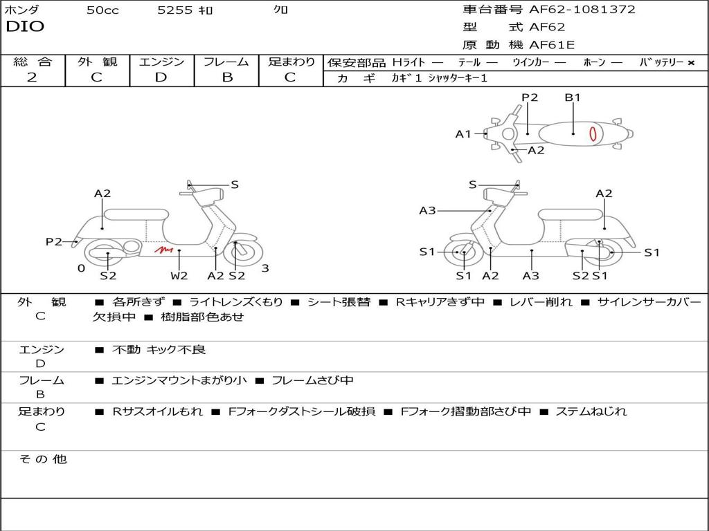 | Номер рамы / VIN | AF62-1081372 |