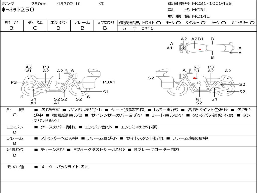 Номер рамы / VIN | MC31-1000458 |