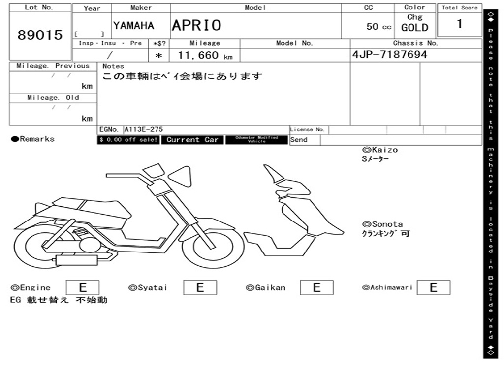 | Аукцион | ARAI BAYSIDE |