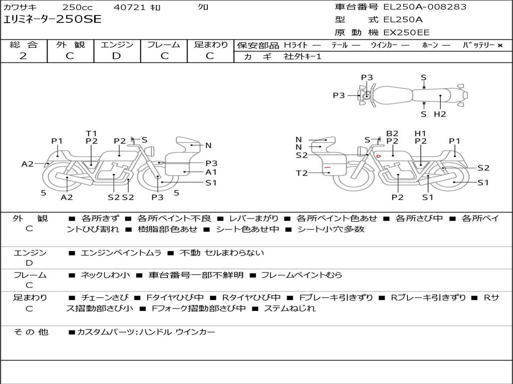 | Номер рамы / VIN | EL250A-008283 |