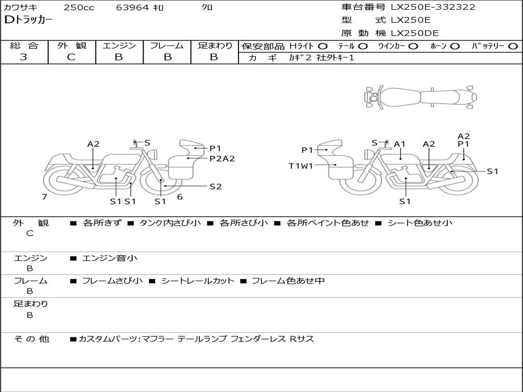 | Номер рамы / VIN | LX250E-332322 |