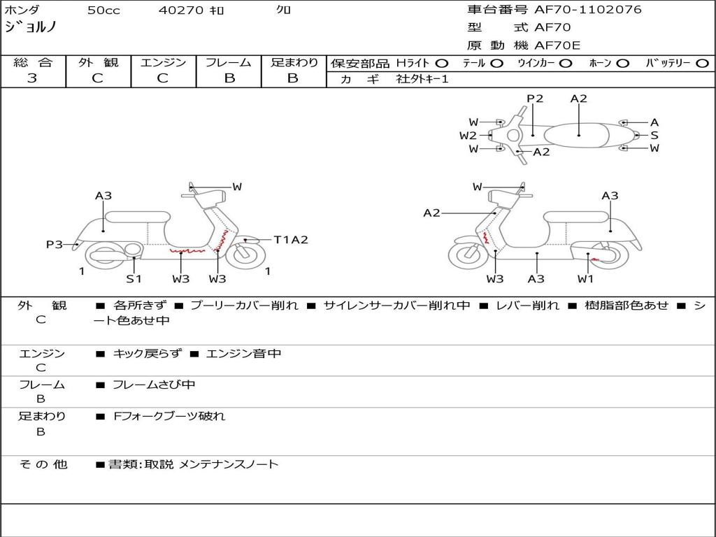 | Номер рамы / VIN | AF70-1102076 |