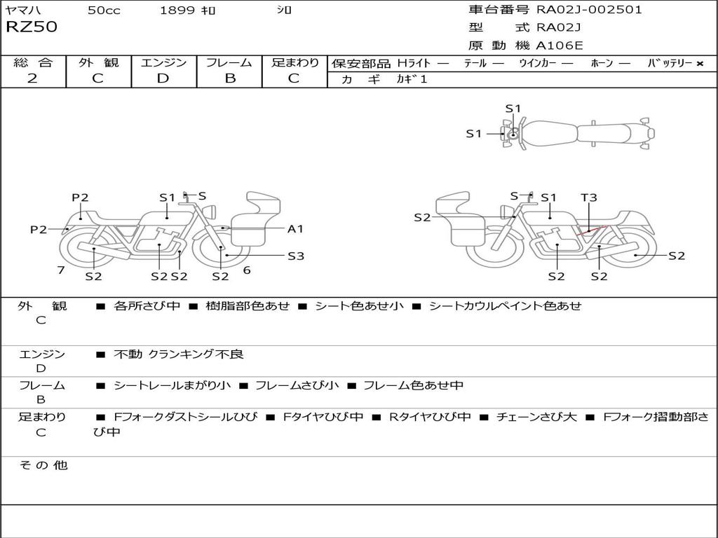 | Номер рамы / VIN | RA02J-002501 |