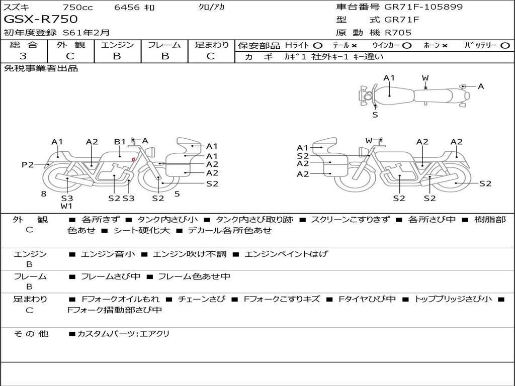 | Номер рамы / VIN | GR71F-105899 |