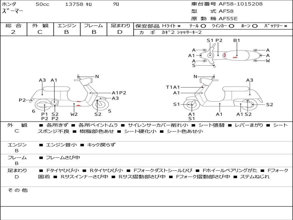 | Номер рамы / VIN | AF58-1015208 |