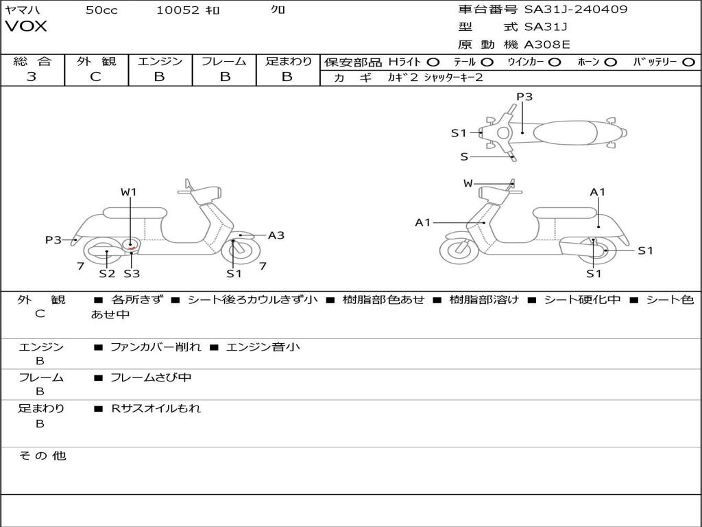 | Номер рамы / VIN | SA31J-240409 |