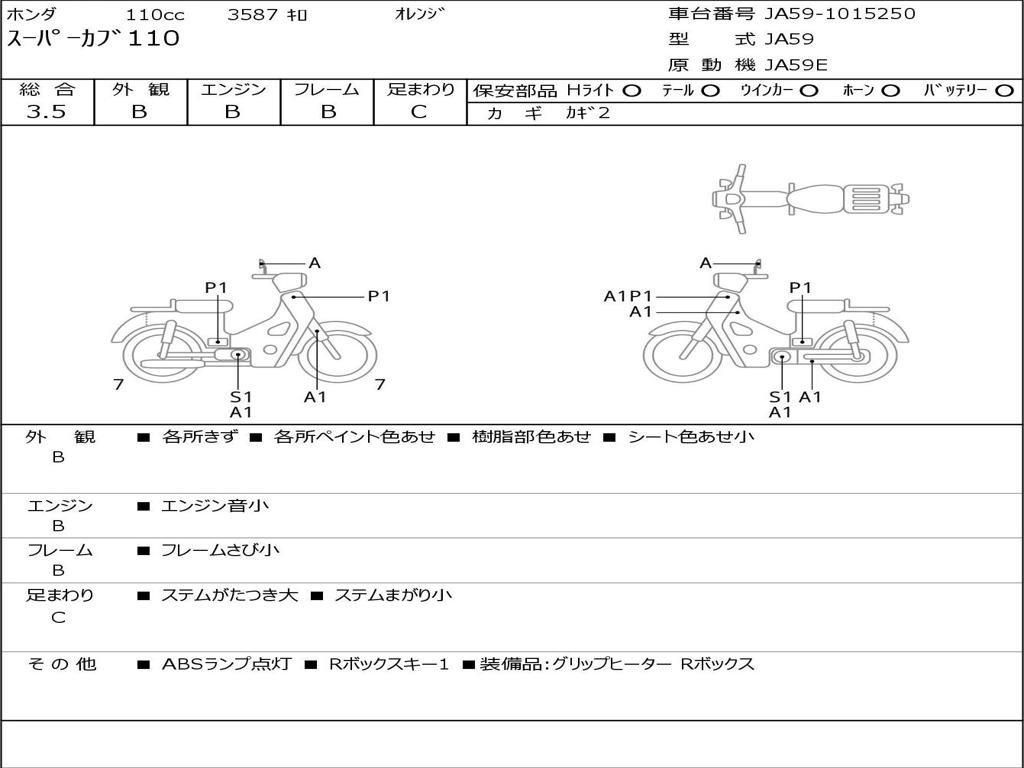 | Номер рамы / VIN | JA59-1015250 |