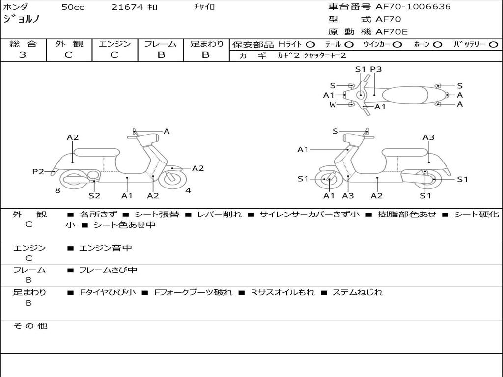 | Номер рамы / VIN | AF70-1006636 |