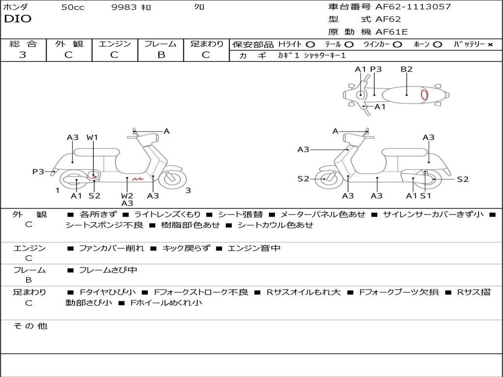 | Номер рамы / VIN | AF62-1113057 |