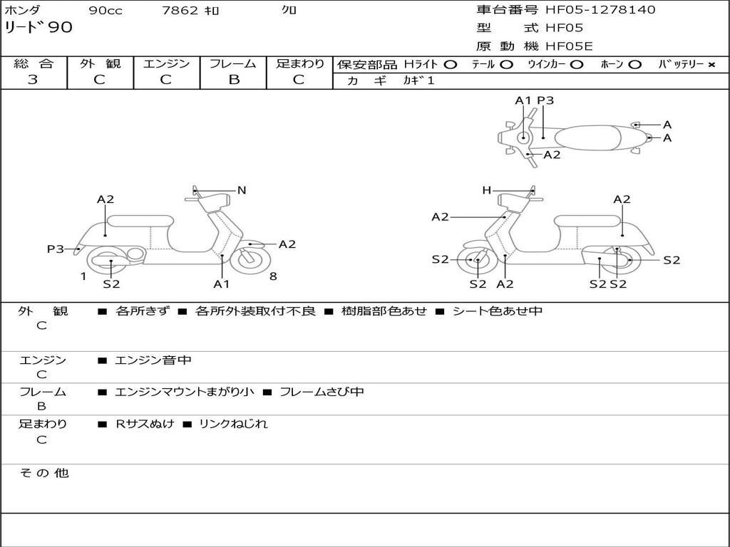 | Номер рамы / VIN | HF05-1278140 |