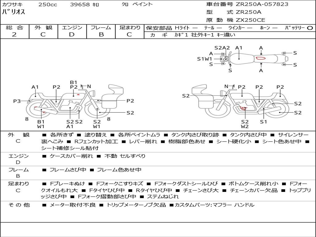 | Номер рамы / VIN | ZR250A-057823 |