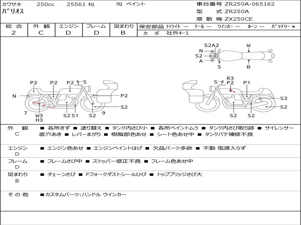 | Номер рамы / VIN | ZR250A-065162 |
