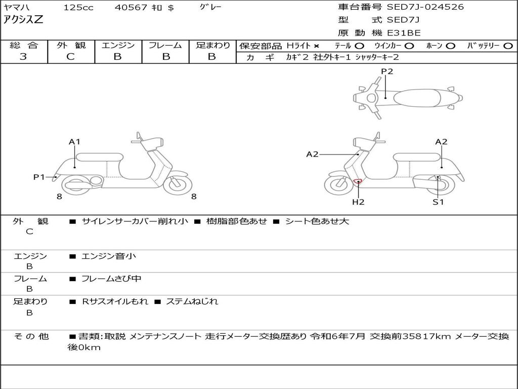 | Номер рамы / VIN | SED7J-024526 |