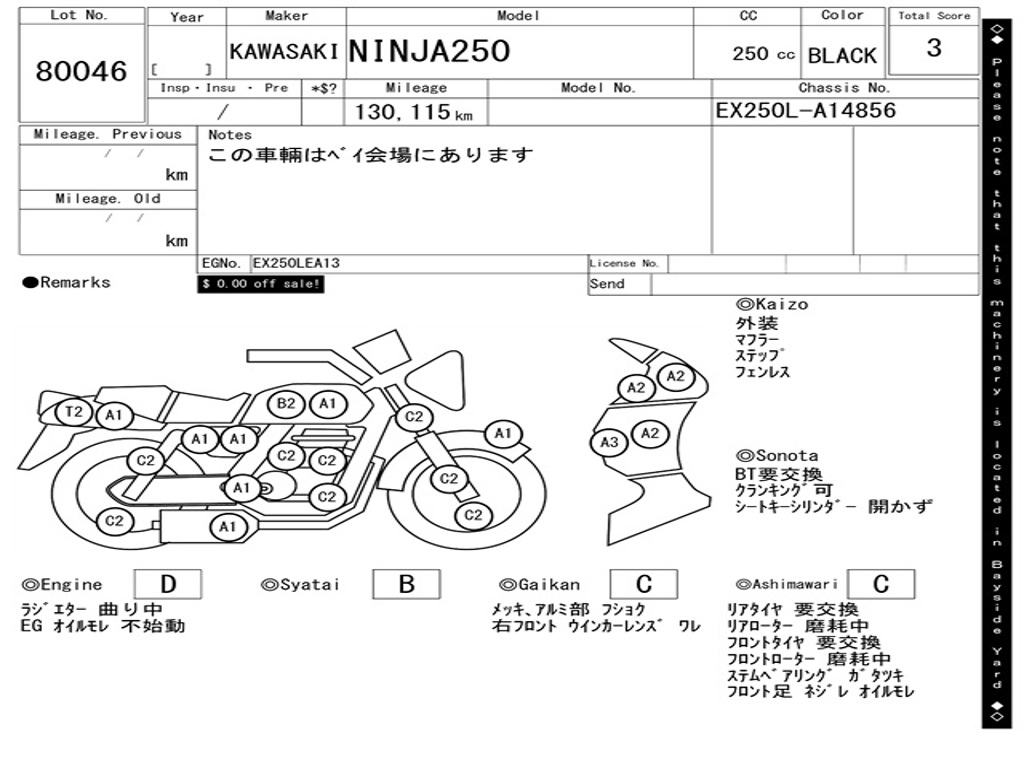 | Номер рамы / VIN | EX250L-A14856 |