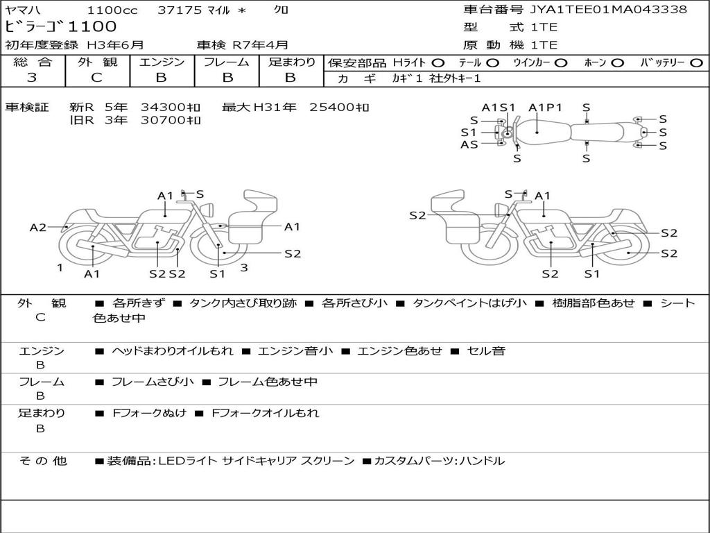| Номер рамы / VIN | JYA1TEE01MA043338 |