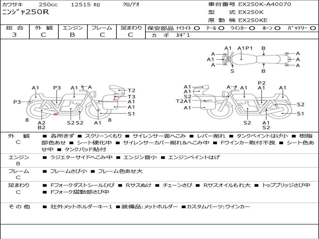 | Номер рамы / VIN | EX250K-A40070 |