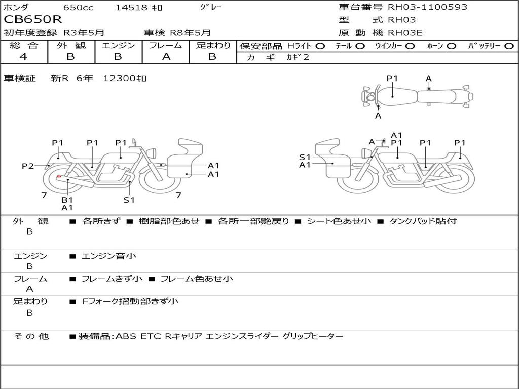 | Номер рамы / VIN | RH03-1100593 |