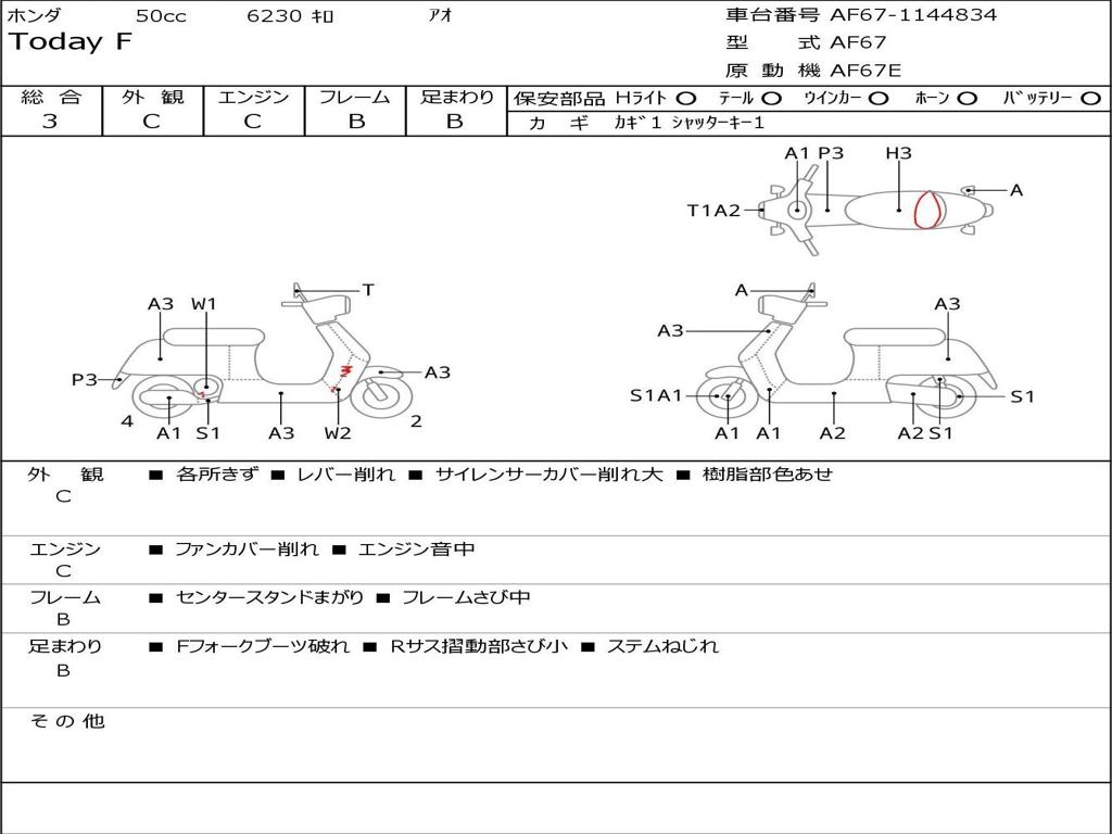 | Номер рамы / VIN | AF67-1144834 |