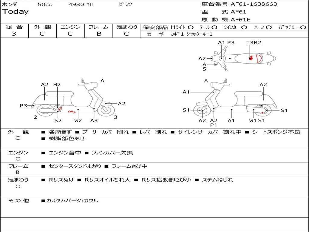 | Номер рамы / VIN | AF61-1638663 |