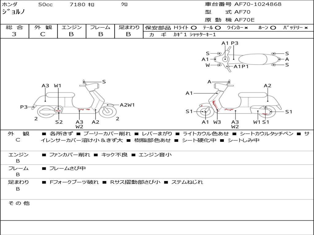 | Номер рамы / VIN | AF70-1024868 |