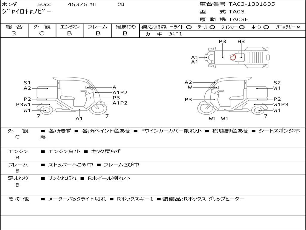 | Номер рамы / VIN | TA03-1301835 |