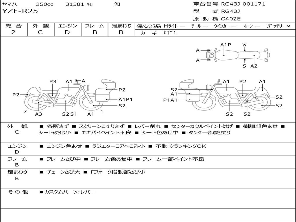 | Номер рамы / VIN | RG43J-001171 |