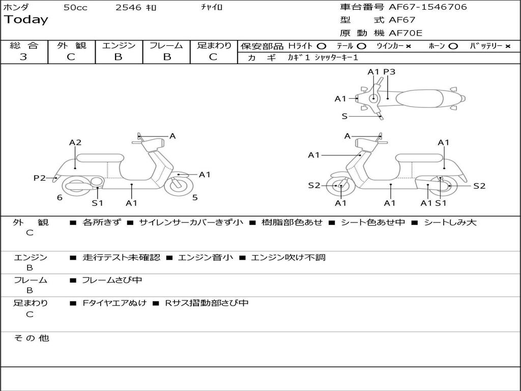 | Номер рамы / VIN | AF67-1546706 |