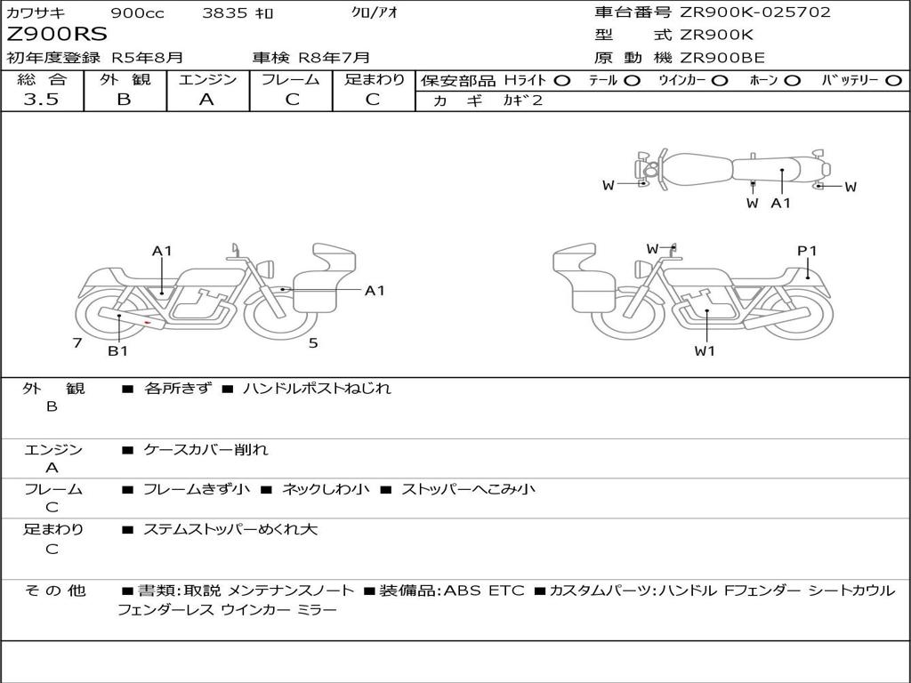 | Номер рамы / VIN | ZR900K-025702 |