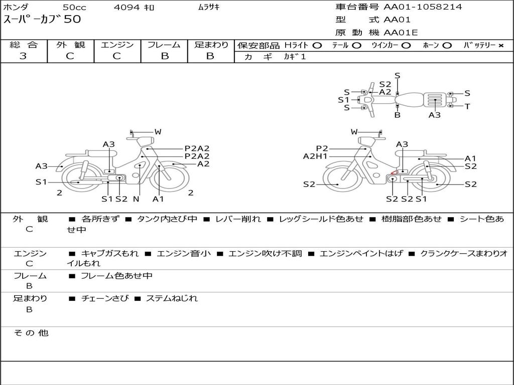 | Номер рамы / VIN | AA01-1058214 |