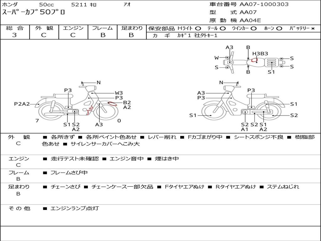 | Номер рамы / VIN | AA07-1000303 |