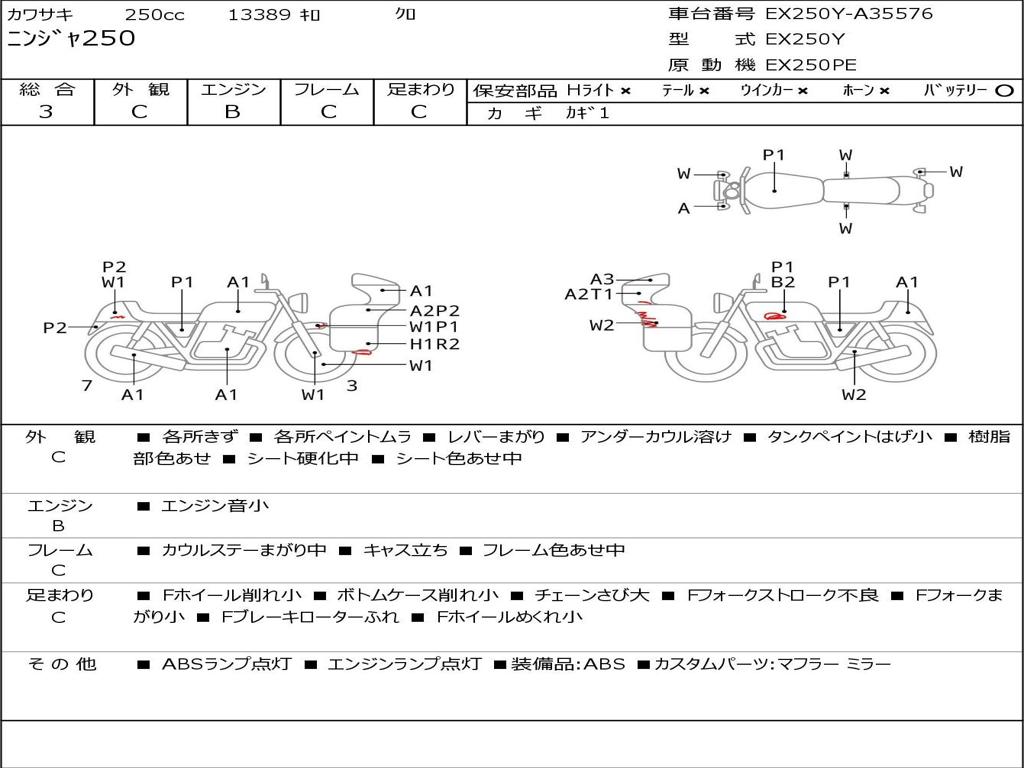 | Номер рамы / VIN | EX250Y-A35576 |