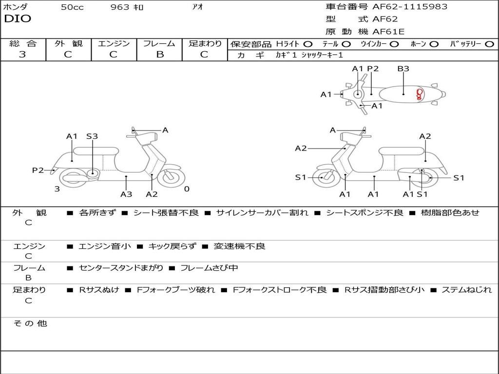 | Номер рамы / VIN | AF62-1115983 |