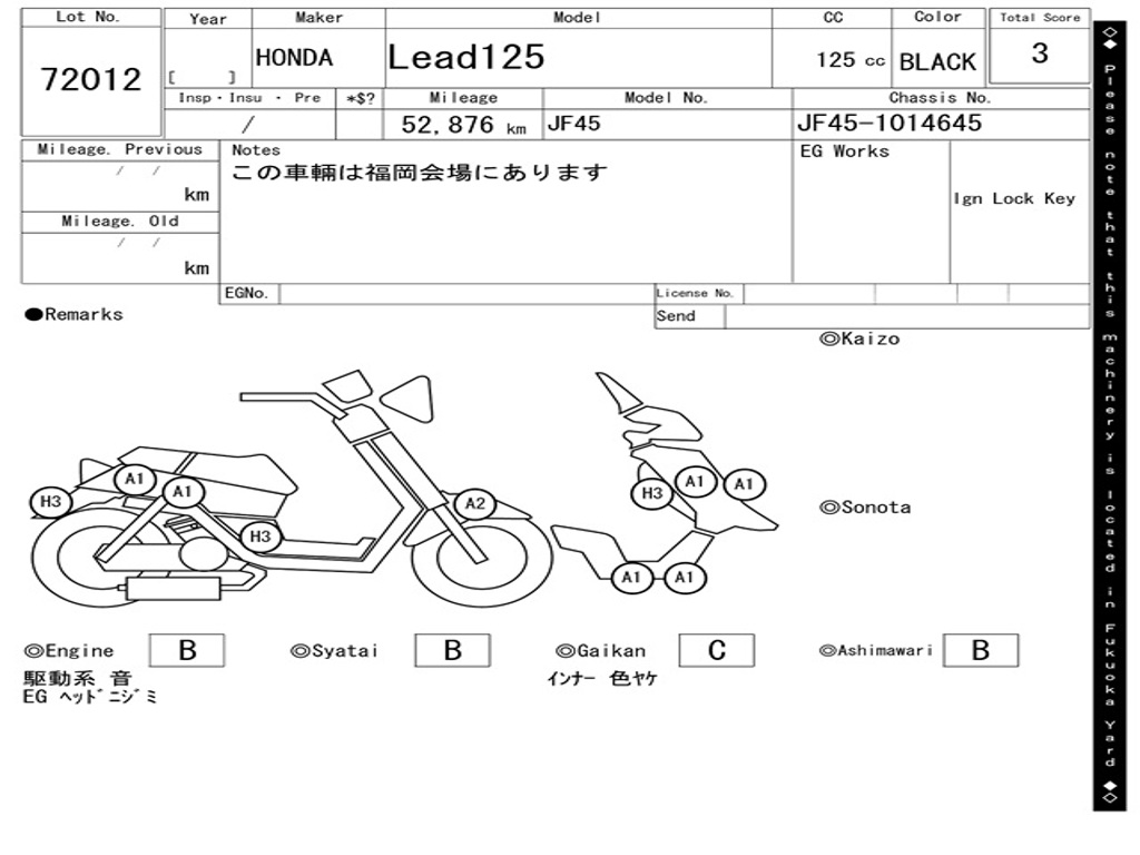 | Номер рамы / VIN | JF45-1014645 |