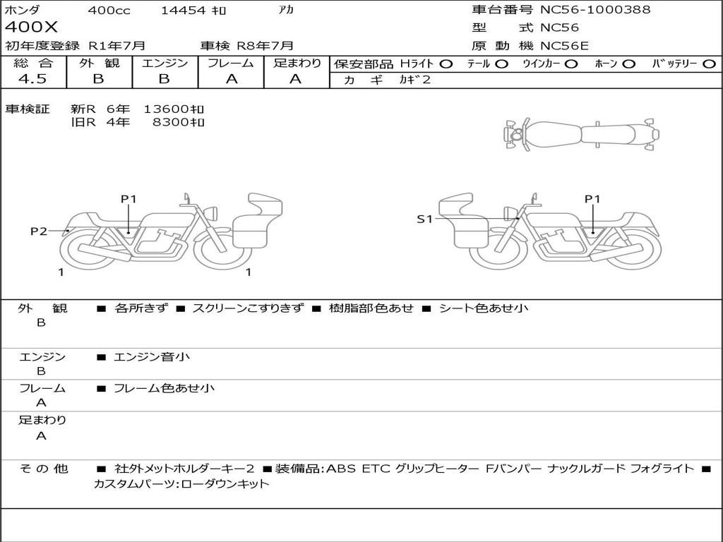 | Номер рамы / VIN | NC56-1000388 |
