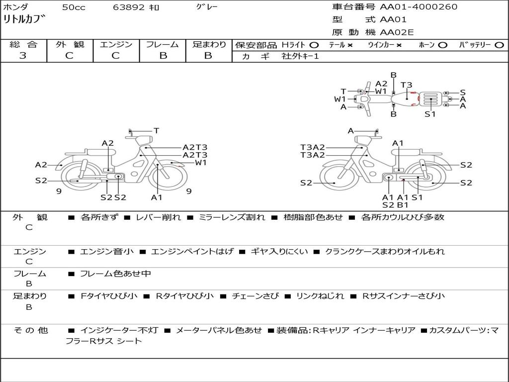 | Номер рамы / VIN | AA01-4000260 |