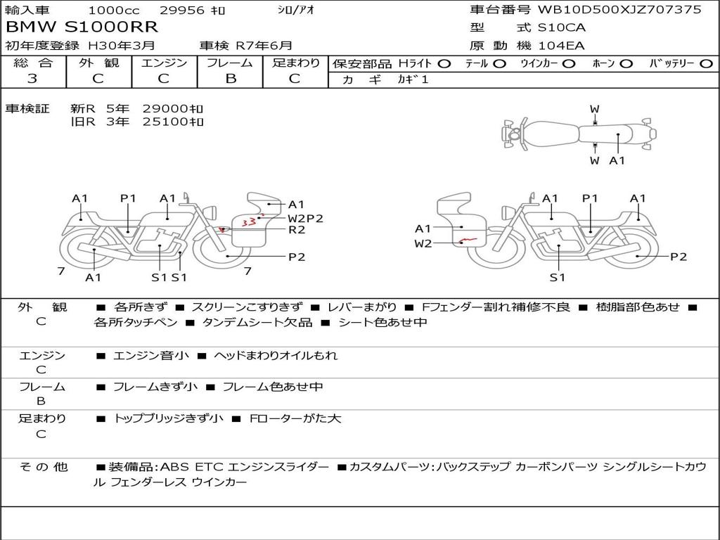 | Номер рамы / VIN | WB10D500XJZ707375 |