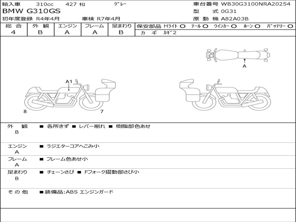Номер рамы / VIN | WB30G3100NRA20254 |