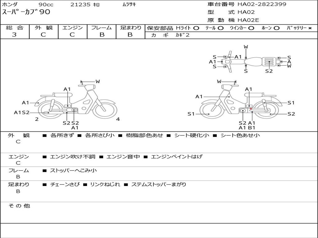 Номер рамы / VIN | HA02-2822399 |