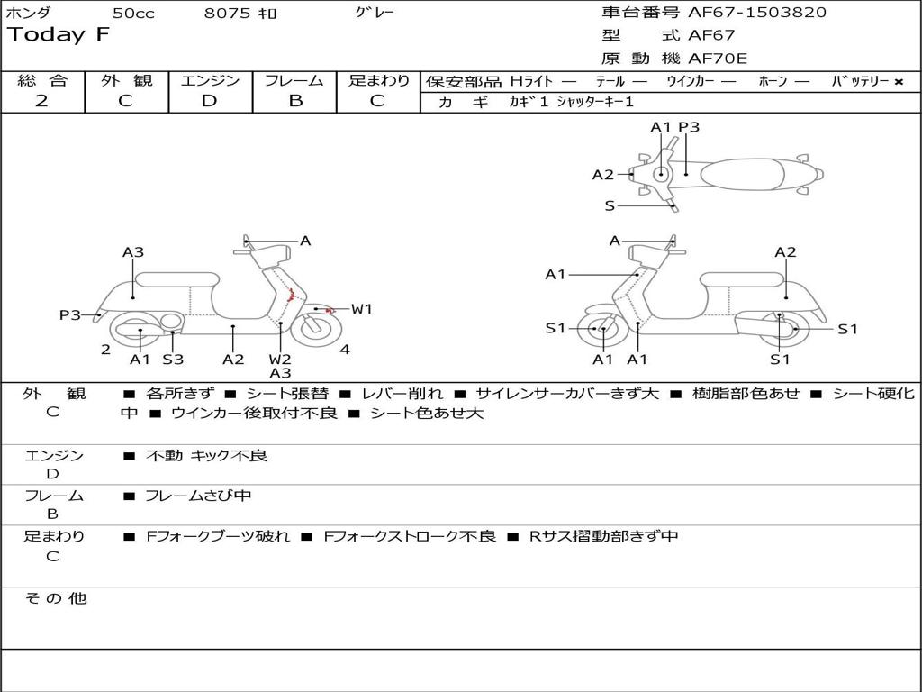 | Номер рамы / VIN | AF67-1503820 |