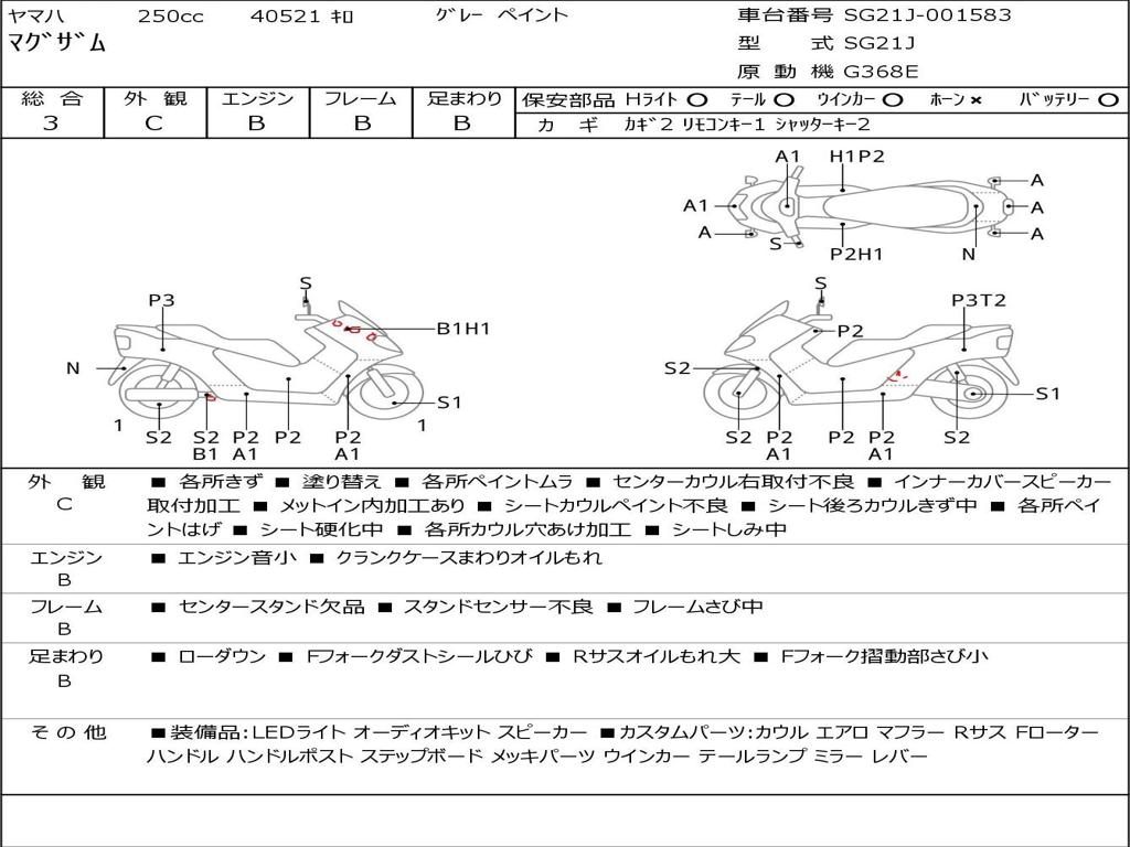 | Номер рамы / VIN | SG21J-001583 |