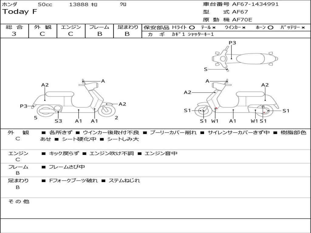 | Номер рамы / VIN | AF67-1434991 |