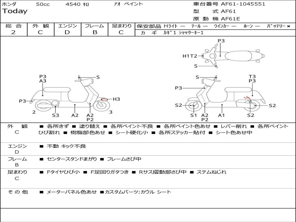 | Номер рамы / VIN | AF61-1045551 |