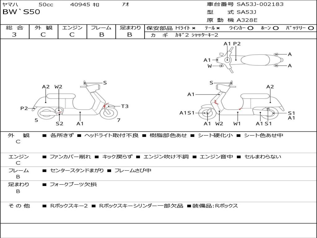 | Номер рамы / VIN | SA53J-002183 |