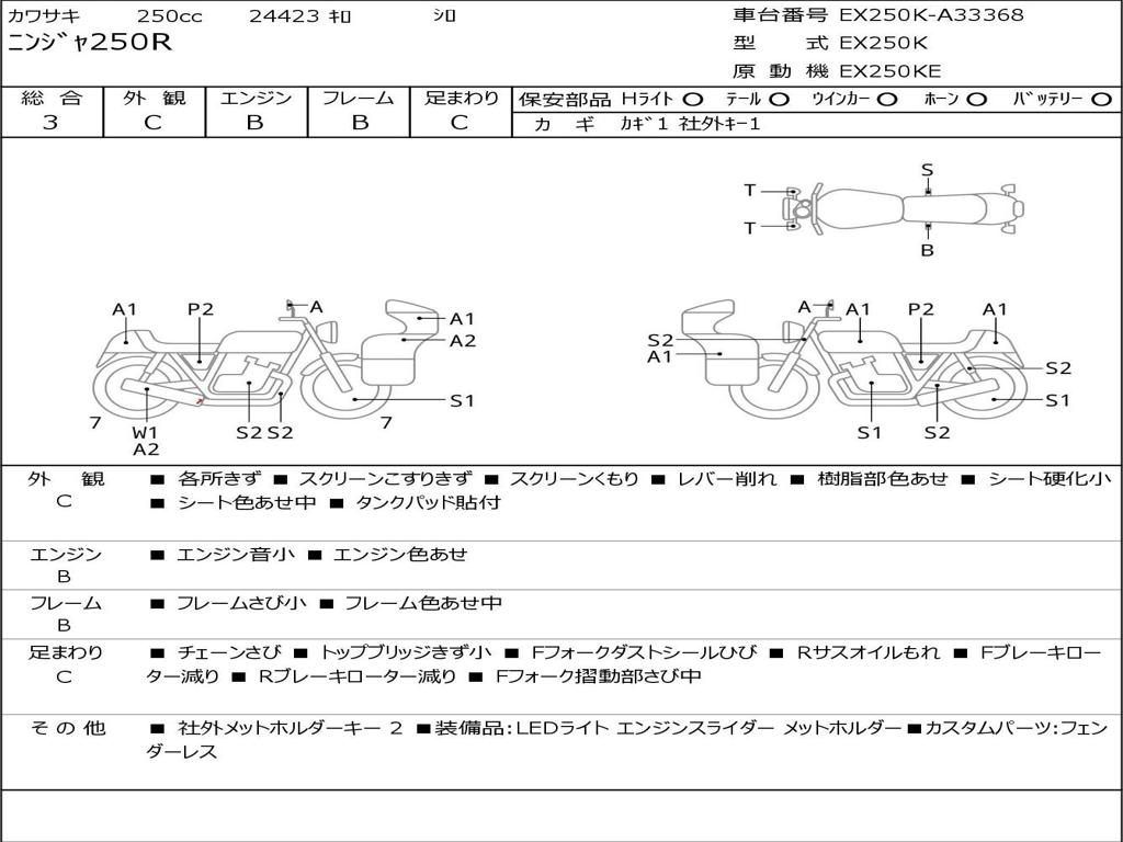 | Номер рамы / VIN | EX250K-A33368 |