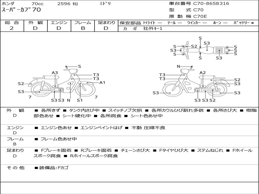 | Номер рамы / VIN | C70-8658316 |